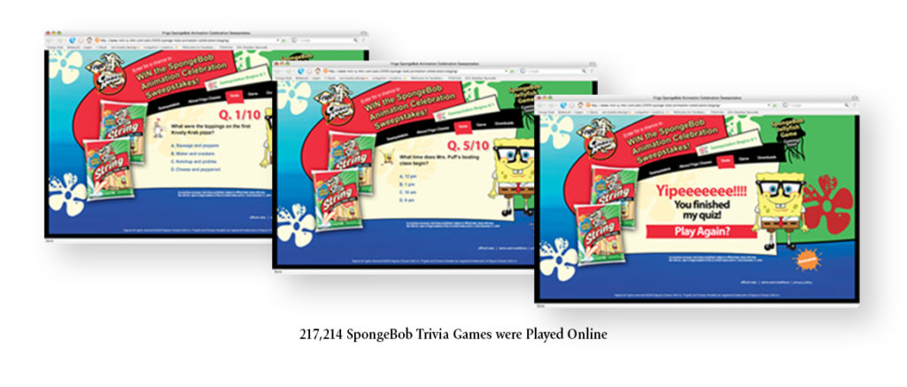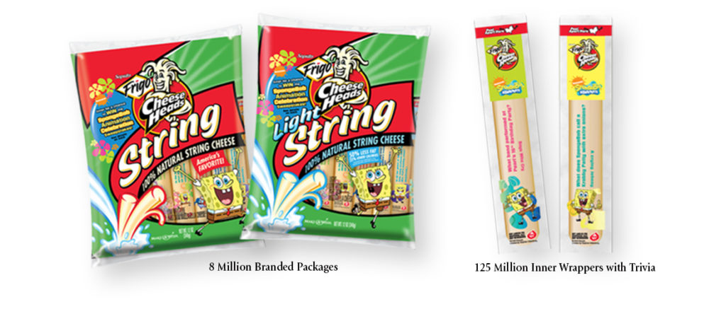 Illustra partnered with Nickelodeon to create a SpongeBob SquarePants promotional sweepstakes for Frigo Cheese Heads string cheese that helped secure sales in the top 10 grocery chain dairy cases and engaged children aged 3-14.