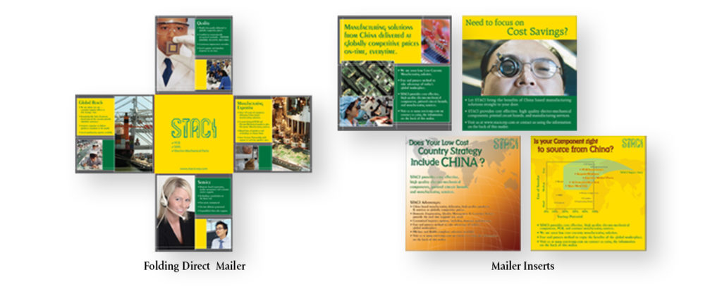 The direct mail campaign was created that included a unique brochure that contained information about STACI printed on it and allowed for a DVD and inserts to be placed inside corresponding to the individual target market.